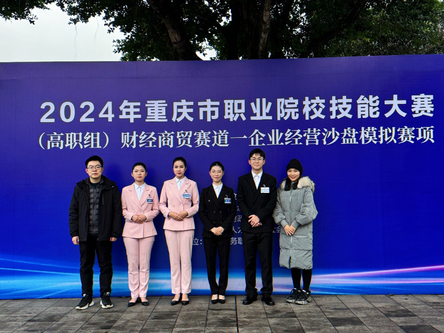 【文/图 会计金融学院】1月8日至11日,2024年重庆市职业院校技能大赛高职组“企业经营沙盘模拟”赛项在学校拉开帷幕。本次大赛由重庆市教育委员会、重庆市经济和信息化委员会、重庆市财政局、重庆市人力资源和社会保障局主办,重庆商务职业学院承办。共有来自市内28个院校50支参赛队伍200名选手参加了本次比赛。会计金融学院张瀚、姚珩、郭爱华、熊晓娅4名指导教师带队参赛。