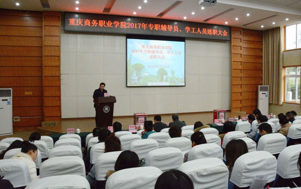 【文/李律 图/杨薇】1月18日下午,学校2017年专职辅导员、学工人员述职大会在第一会议室举行。副院长舒鸿,学工部(团委)、组织人事处负责人,各院系党总支、学团办负责人,全体专职辅导员及学工干事参加大会。
