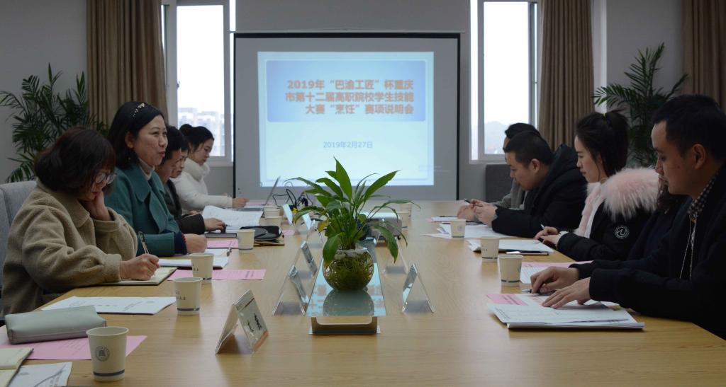 【文/赵晓芳 徐潇焱 图/新闻中心】2月27日、28日,学校分别举行“巴渝工匠”杯重庆市第十二届高等职业院校学生职业技能竞赛烹饪赛项和商务数据分析与应用赛项说明会。来自全市13所高职院校的教师代表及技术方支持代表参加说明会。
