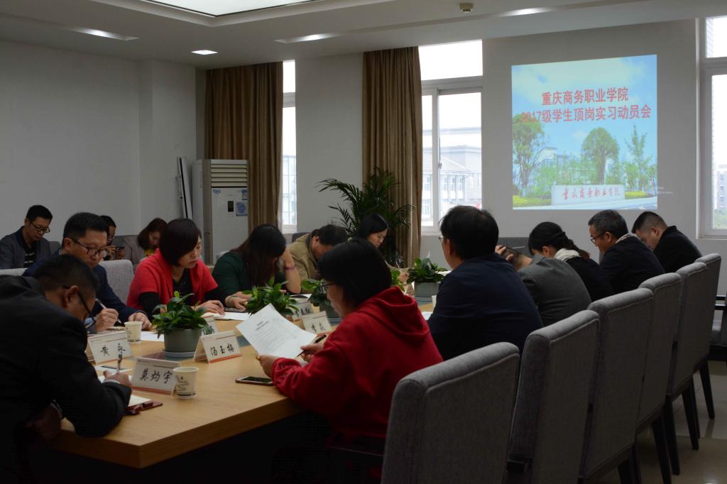 【文/教务处 图/党委宣传部】11月4日,学校在第五会议室召开2017级学生顶岗实习动员大会。副院长丁谦,学生工作部、教务处、保卫处负责人和各院系党政负责人参会。