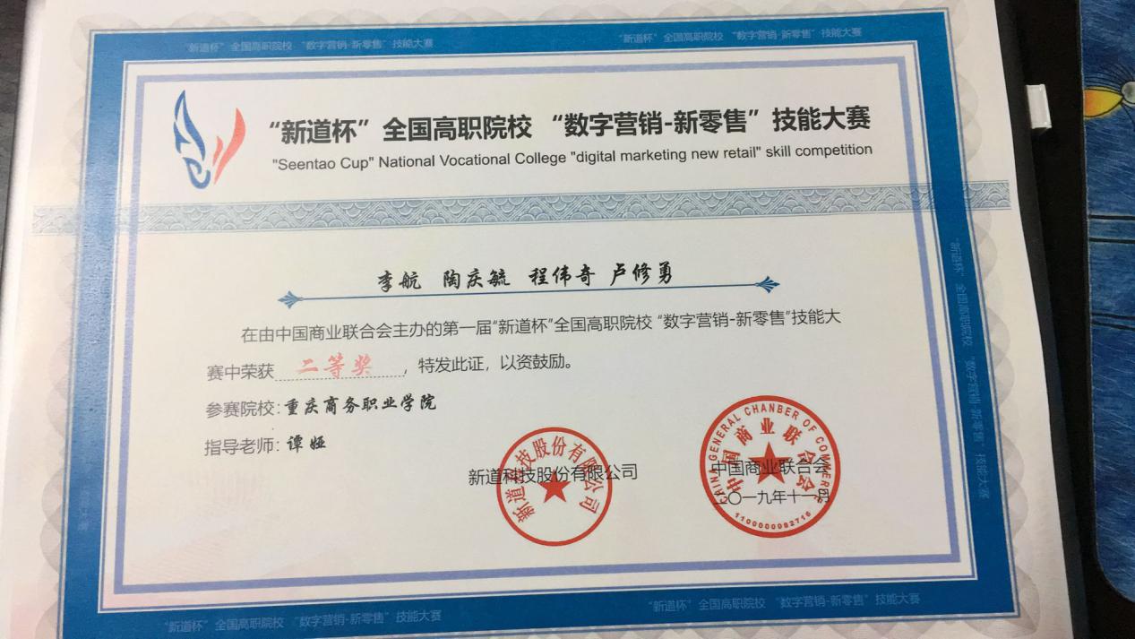 【文/图 商贸管理系】11月28日—12月1日 ,“新道杯”全国高职院校“数字营销-新零售”技能大赛在无锡商业职业技术学院举办,来自全国各地的54所院校的216名参赛选手参加了比赛。经过激烈角逐,学校谭娅老师指导的李航、陶庆毓、程伟奇、卢修勇4名同学获全国二等奖。