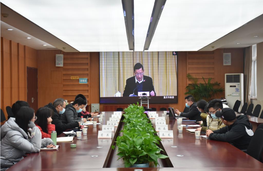 【文/教务处 图/新闻中心】 12月23日,市教委召开重庆市职业院校“1+X”证书制度试点工作经验交流(视频)会议,副院长丁谦、教务处负责人在市教委主会场参会,教务处、财务处相关人员及各“1+X”证书负责人在学校分会场参会。