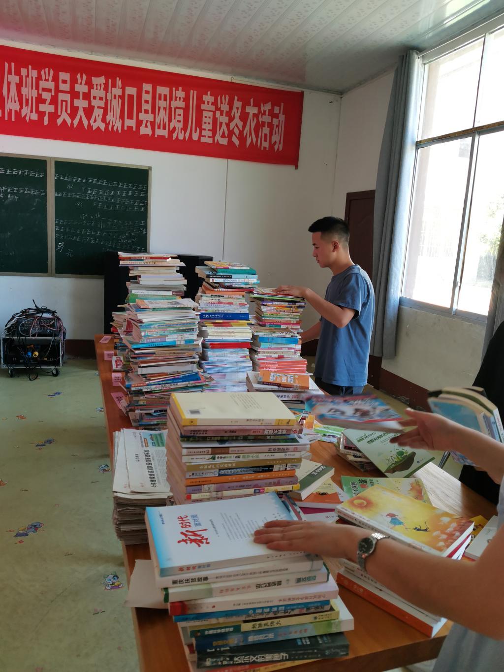 实践团成员为村图书室整理图书