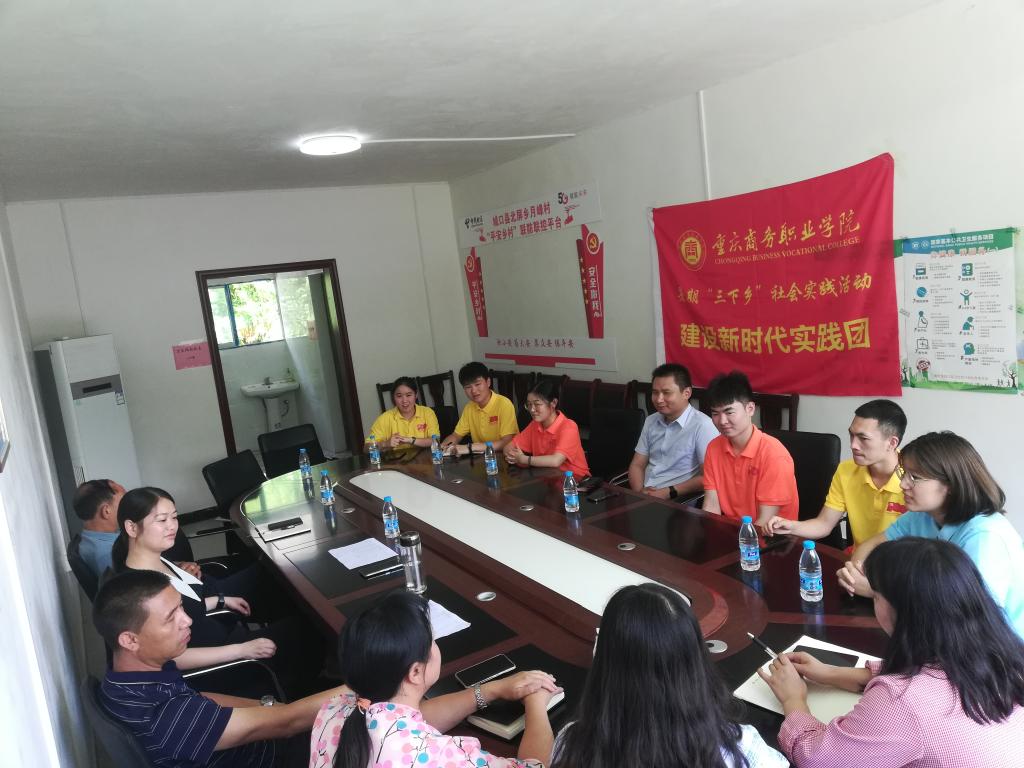 实践团成员与月峰村村委会干部进行交流