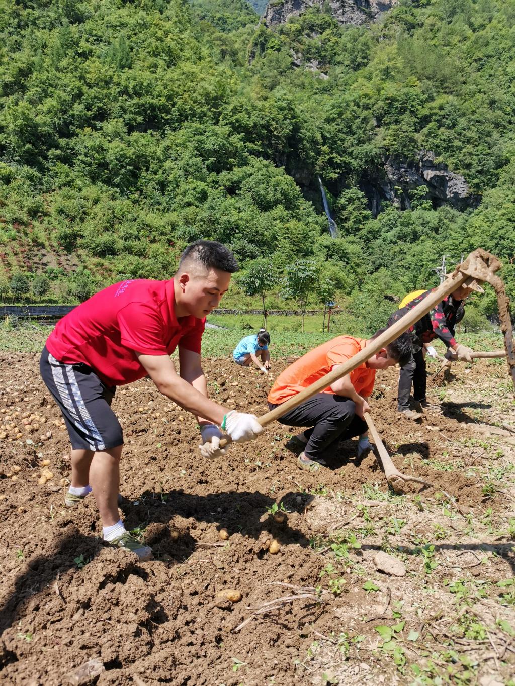 实践团成员帮助老人挖土豆