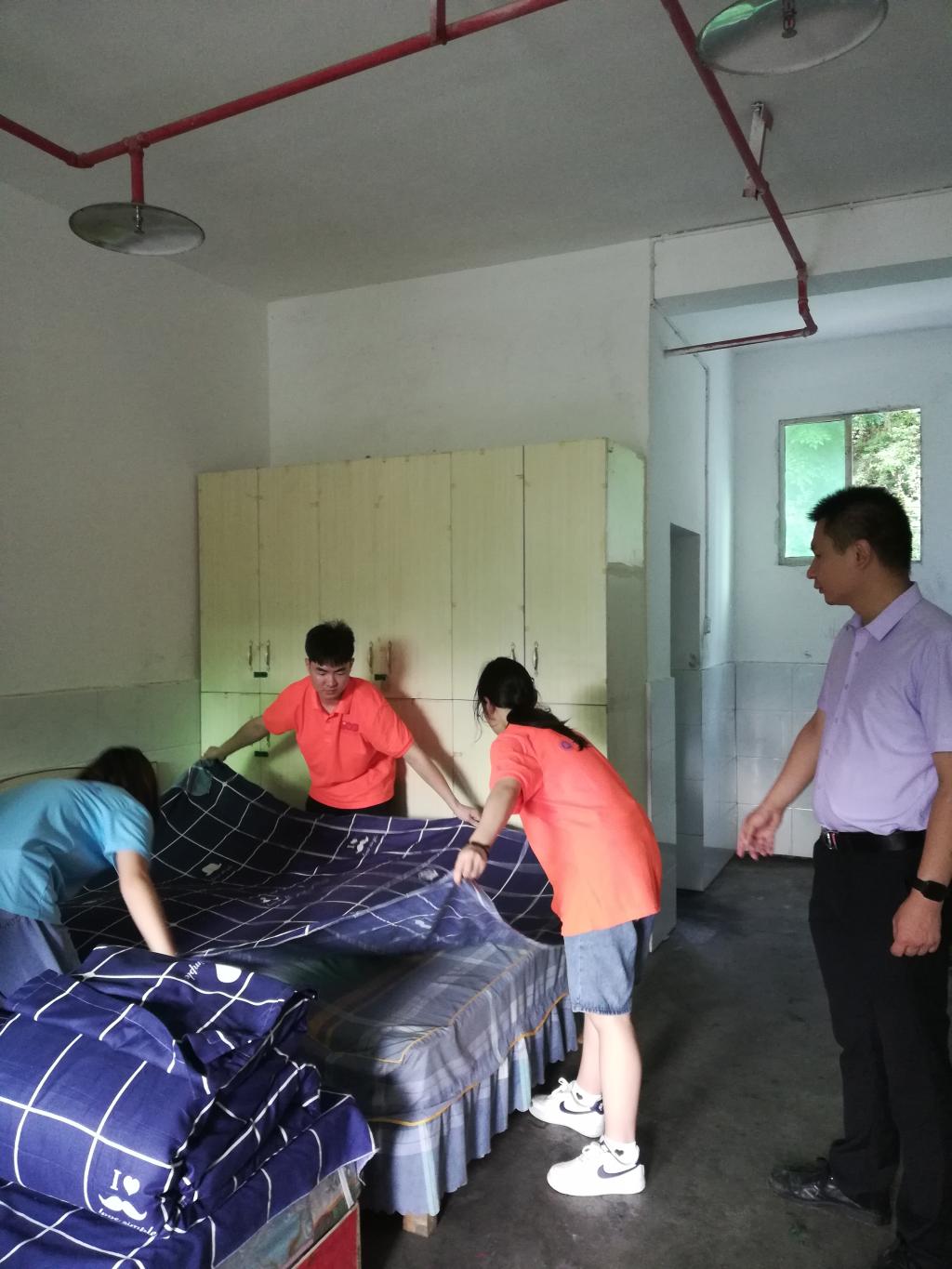 实践团成员为敬老院老人整理内务