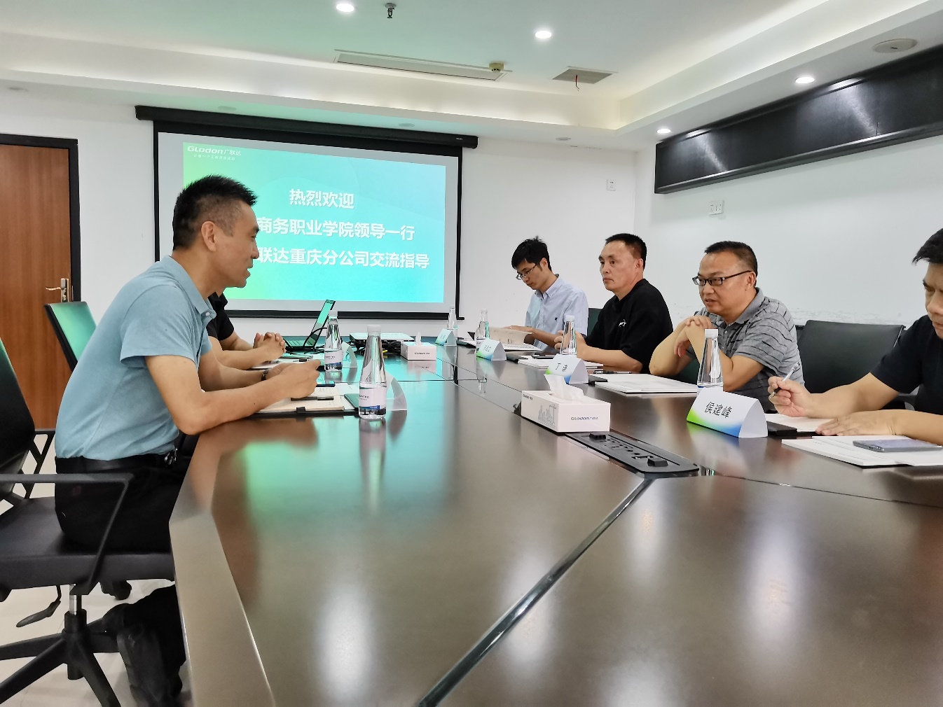 广联达科技股份有限公司的解说员向学校考察组详细介绍了公司的发展历程,丁谦一行与重庆分公司副总经理葛留名进行了座谈交流,葛留名介绍了广联达公司围绕建设工程项目全生命周期的产业链布局以及公司在建筑教育领域与院校开展的合作情况。