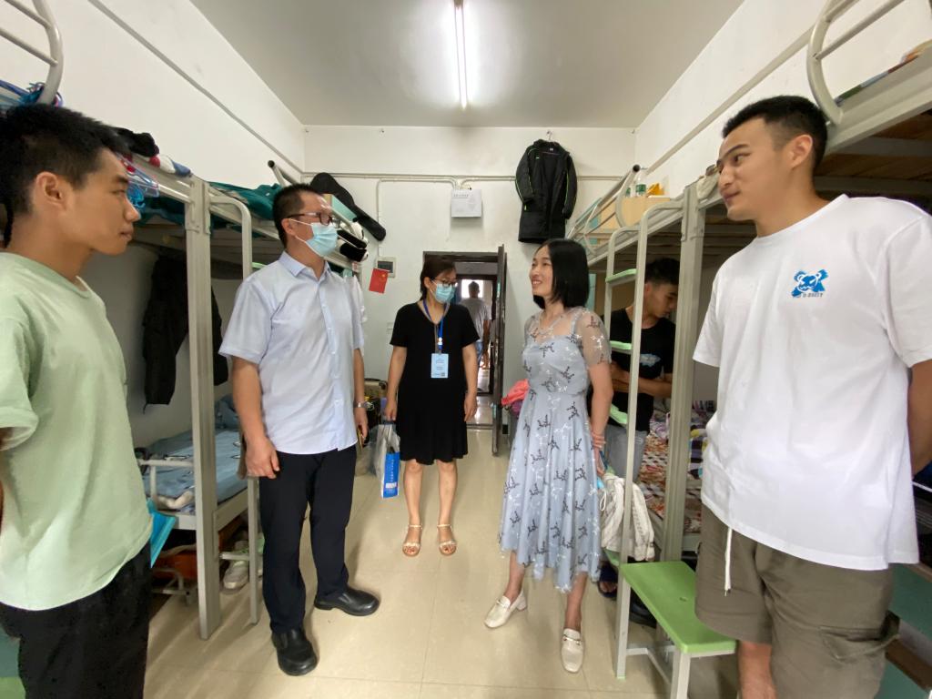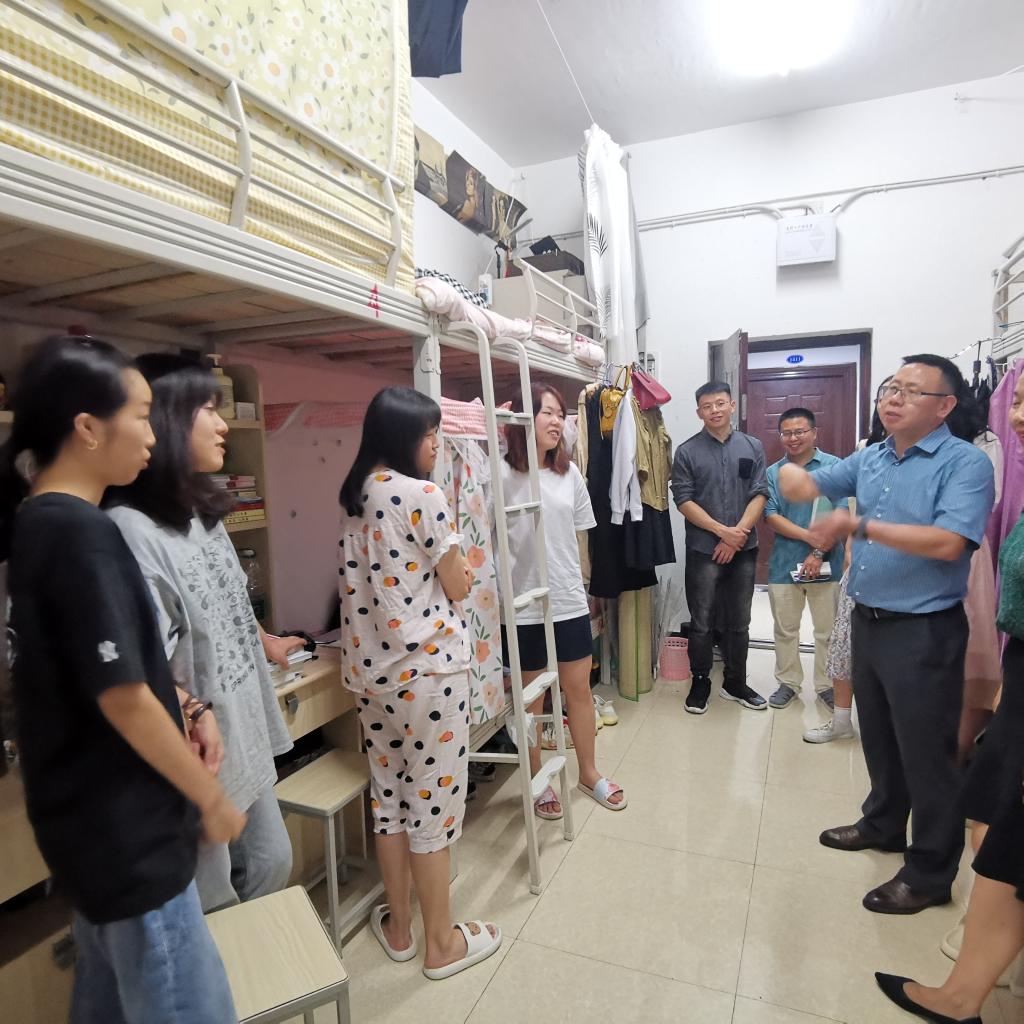 各二级学院党政负责人也纷纷深入学生宿舍,关心了解同学们的学习、生活、就业等方面情况,鼓励学生们要心怀理想,志存高远,相互帮助,共同进步,提醒大家要注意身心健康,加强锻炼,努力改善宿舍卫生状况,提高安全风险防范意识。在走访过程中,部分二级学院负责人也了解到学生们在学习、生活中的部分困难,他们第一时间向学校相关部门进行了反映,先后解决了寝室晾衣杆不足、宿舍墙壁漏水、学生宿舍调整无摆渡车等问题。