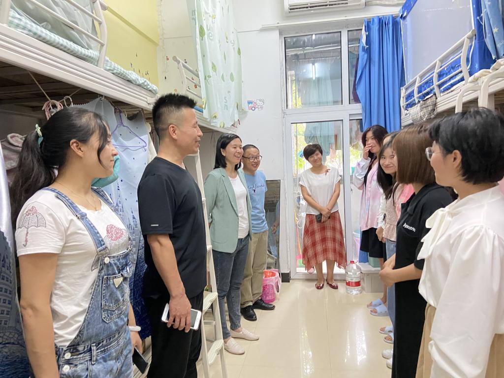 【文/图 学生工作部】为深入了解新生思想动态及生活情况,进一步落实学生返校的各项工作,学校各级领导、辅导员深入课堂、宿舍,关心关爱学生,给予学业、生活上的指导与帮助。