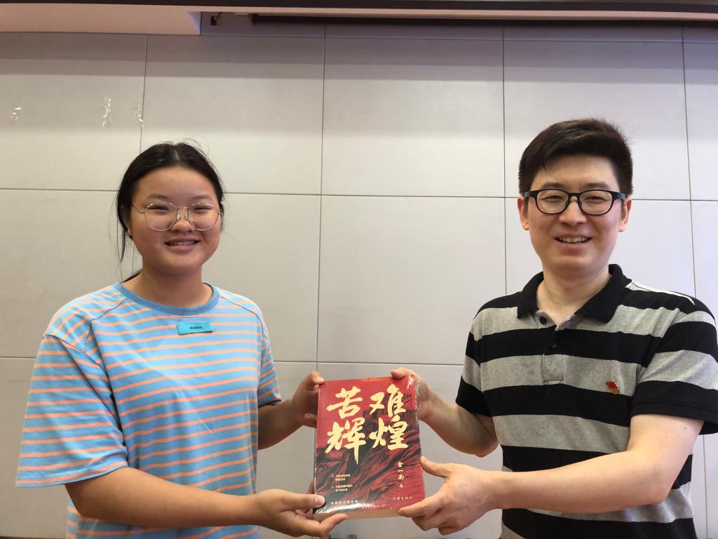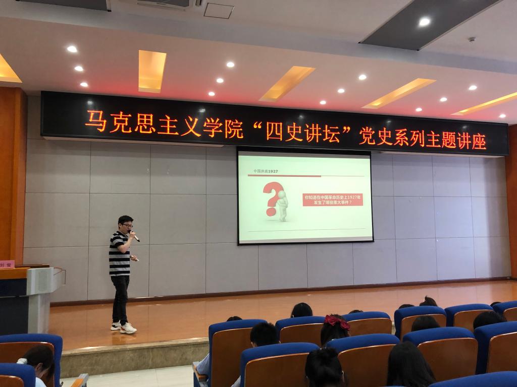 刘俊以《中国洪流1927》为题,从国民党“四一二”“七一五”反革命政变到南昌起义及开辟将井冈山革命根据地,对中国红色政权为什么能够存在、中国共产党的力量从哪里来进行了鞭辟入里的分析,获得了学生普遍认同,现场气氛活跃。刘俊老师还给积极答问的学生赠书,激励学生多关注世情国情,不负时代使命。