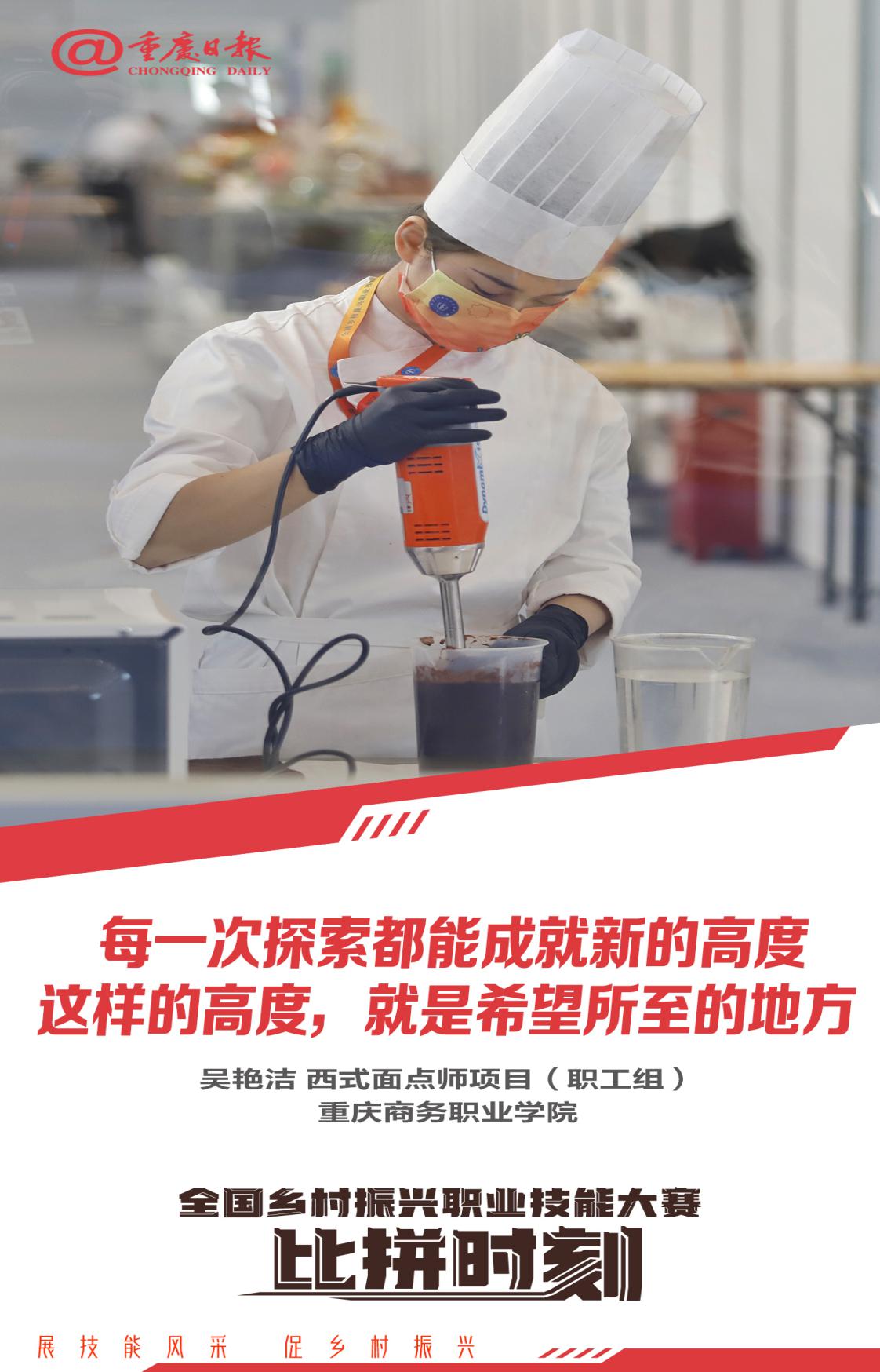 【文/图 烹饪学院】9月28日,由人力资源和社会保障部、国家乡村振兴局、新疆维吾尔族自治区人民政府主办的全国乡村振兴职业技能大赛在新疆国际会展中心成功闭幕。学校烹饪学院学生王静秋获金奖、教师吴艳洁获铜奖、学生张雨婷获优胜奖,由学校培养的万州技师学院教师周德琼获餐厅服务项目职工组优胜奖。
