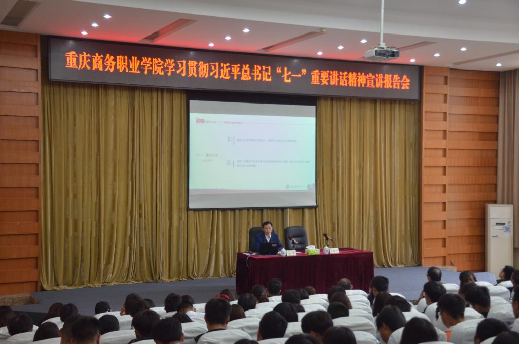 【文/人工智能学院 图/党委宣传部】10月21日下午,重庆市委教育工委宣讲团成员,学校学习贯彻习近平总书记“七一”重要讲话精神宣讲队副队长,学校党委委员、副院长张荣在第一会议室就学习贯彻习近平总书记“七一”重要讲话精神作专题宣讲报告。人工智能学院副科级以上干部、教师党员和学生代表200余人参加宣讲报告会。