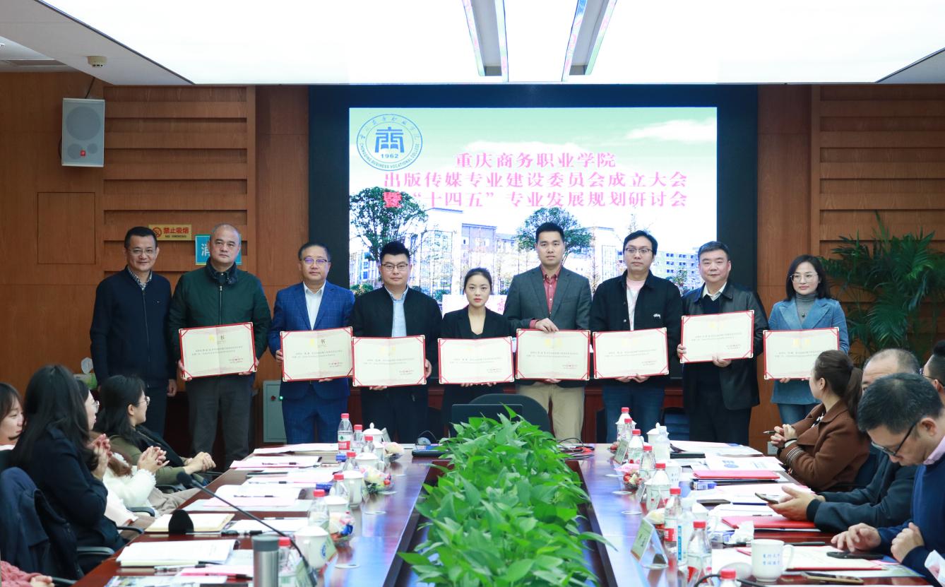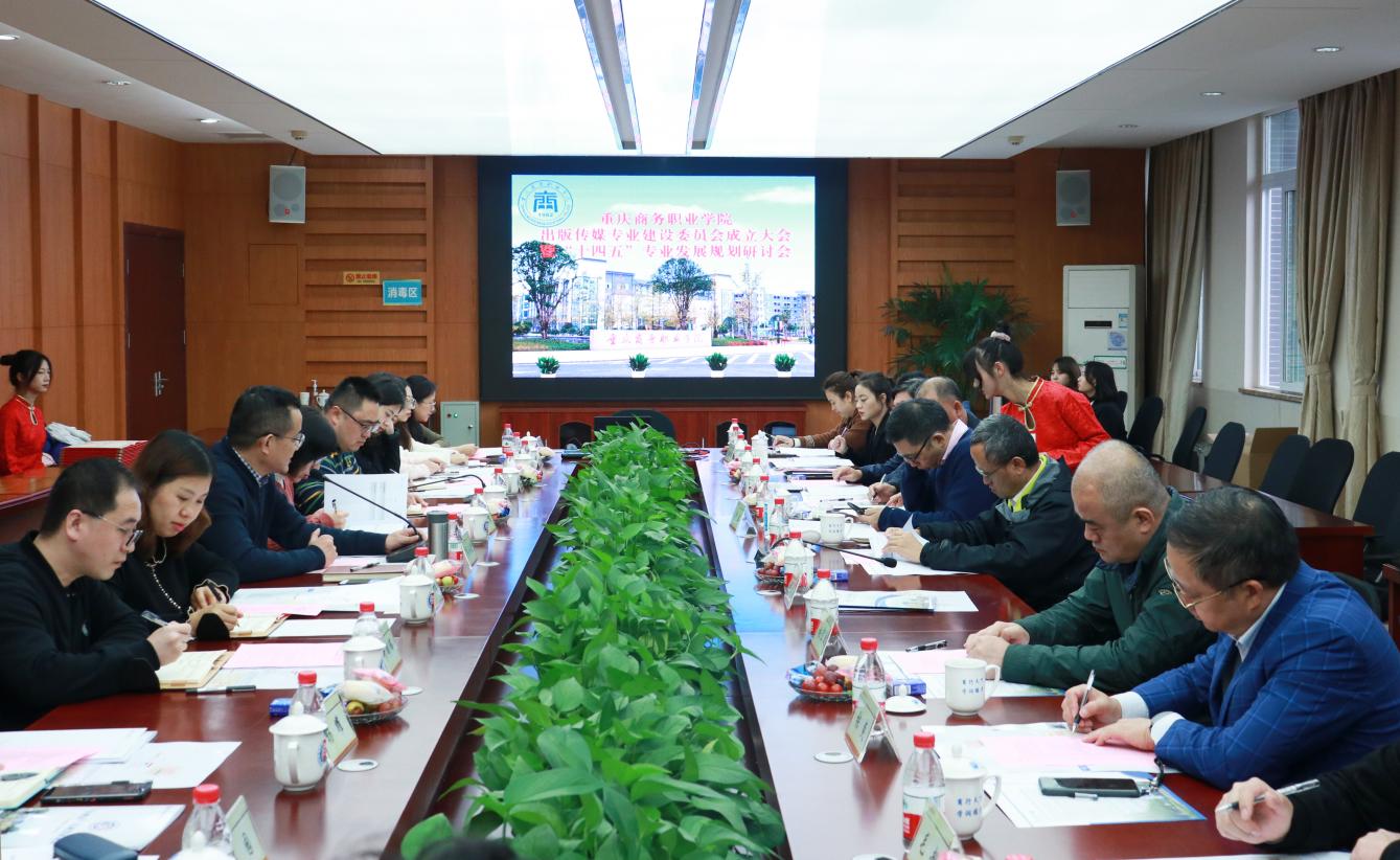 【文/图 出版传媒学院】10月29日上午,出版传媒专业建设委员会成立大会暨“十四五”专业发展规划研讨会在学校第三会议室举行。会议邀请四川外国语大学新闻传播学院邬建中、重庆第二师范学院文学与传媒学院副院长严亚、重庆电子工程职业学院数字媒体学院院长刘晓东、重庆工程职业学院艺术设计工程学院院长黄治国、重庆轻工职业学院教务处处长樊可义、重庆市印刷协会会长吴虹、印通天下印刷科技有限公司董事长张宏波、重庆市远大印务有限公司董事长张爽、凤凰数媒(北京)教育科技有限公司副总裁毛超、华龙网产教合作中心事业部总经理彭发清等院校及企业领导参加研讨会。学校副院长贾小波,质量管理处,出版传媒学院副科级以上干部、教研室主任及各专业负责人参加会议。