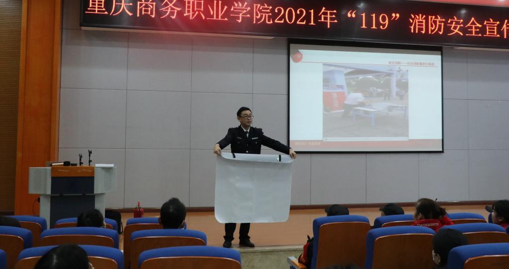 【文/图 保卫处】11月24日,学校邀请校外消防培训机构专家在学术报告厅开展“119”消防安全宣传月消防安全知识讲座,各二级学院师生代表、物业公司职工、食堂商铺负责人共计300人参加讲座。