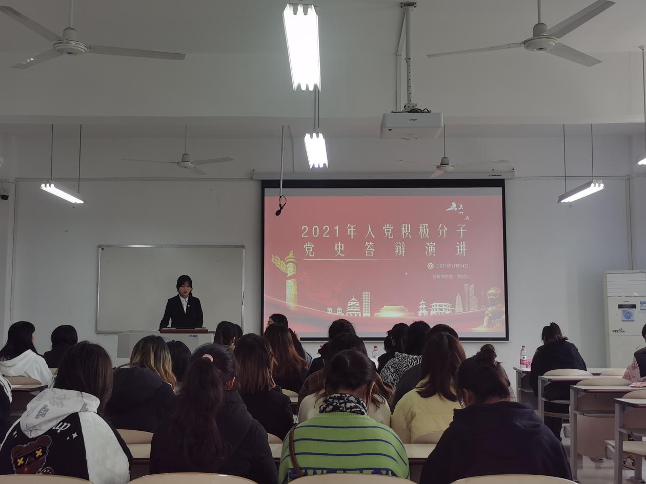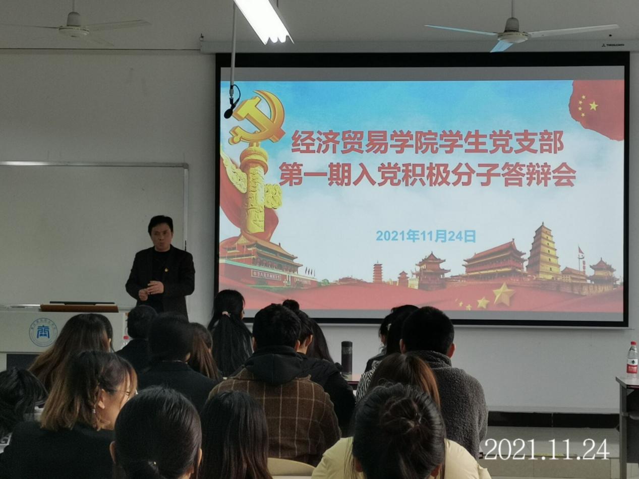 【文/图 经济贸易学院】11月24日,为严把党员发展入口关,提高党员发展质量,贯彻“控制总量、优化结构、提高质量、发挥作用”方针,进一步健全学院学生党员发展制度,推进党史学习教育走深走实,经济贸易学院学生党支部在1322教室举行了第一期入党积极分子答辩会。学院党总支副书记、组织委员,学生党支部全体委员担任评委;支部全体学生党员、未满一年的入党积极分子列席此次会议。
