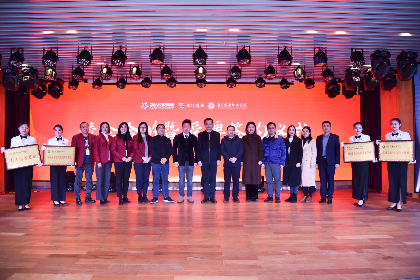 【文/李丽 图/文化旅游学院】11月30日,学校与重庆冠达世纪游轮有限公司在朝天门11号码头世纪荣耀游轮举行校企合作签约仪式。副院长贾小波,文化旅游学院、烹饪学院党政负责人、部分行政、教师及学生代表,重庆冠达控股集团副总裁、冠达世纪游轮总裁陈伟和相关部门负责人出席签约仪式。
