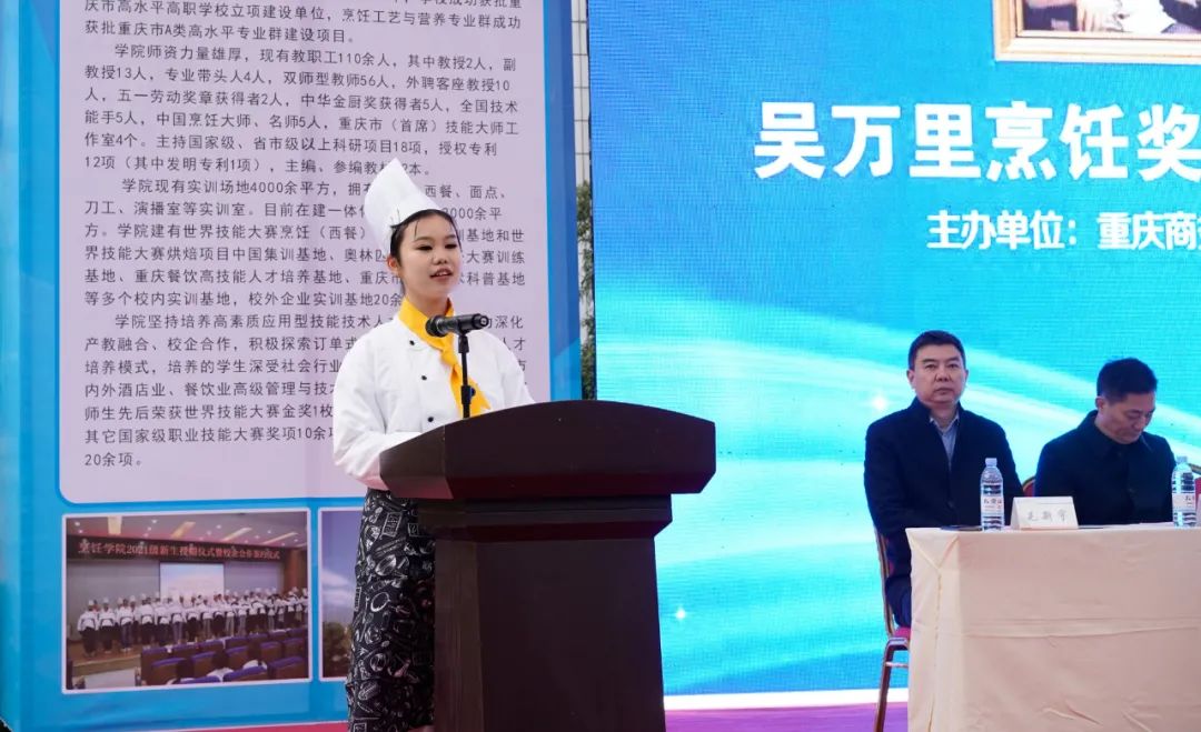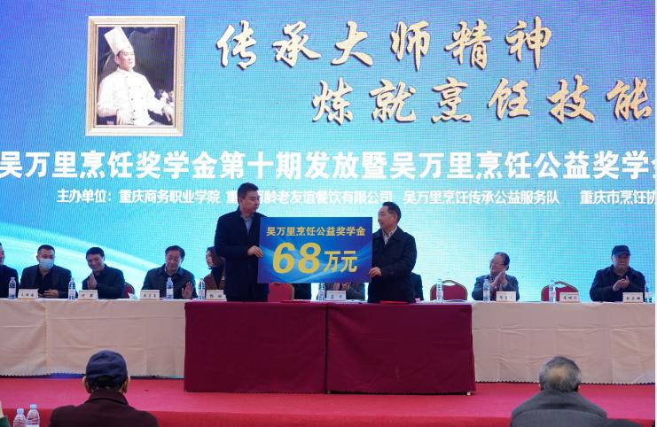 应、往届获奖学生代表在发言中表示,荣获吴万里烹饪奖学金是一种激励和鼓舞,他们将秉承吴老遗志,坚定理想信念,弘扬工匠精神,刻苦学习,勇于创新,为重庆烹饪行业的蓬勃发展贡献青春力量。