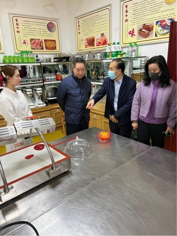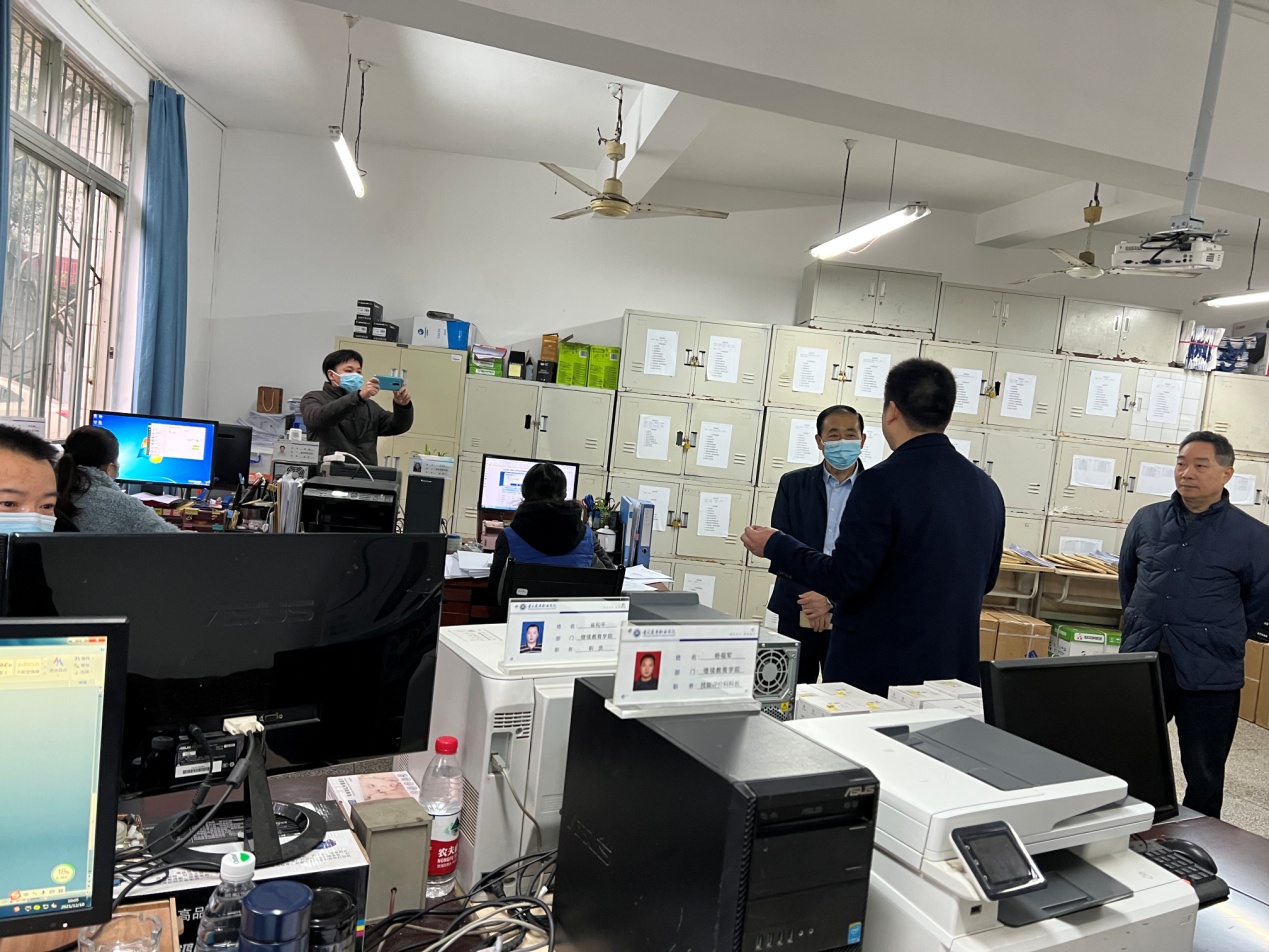 【文/图 继续教育学院】12月10日,重庆市人力社保局巡视员王荣胜,重庆市人力社保局副处长周庆和重庆市就业服务管理局副局长李云勇一行到学校南岸校区参观世赛基地、检查考核场地、调研认定考试流程,并对职业技能等级认定的档案进行检查。