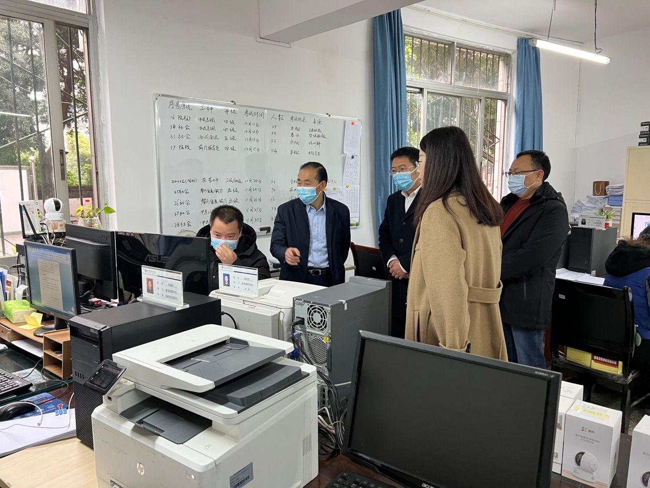 继续教育学院介绍了学校职业技能等级评价工作的开展情况。调研组开展“局长走流程”工作,询问了工作人员使用职业技能等级评价考务系统的情况。王荣胜对学校职业技能等级认定工作予以肯定,特别是对学院切实执行考评员轮换制和考评员回避制、特意邀请行业大师对学生和社会参考人员开展考评表示肯定。继续教育学院负责人表示,学校一直严格按照职鉴中心的考务流程规范操作,设置标准化的考场和配套设施,充分保证了每次职业技能等级认定工作的有序开展。调研组的肯定,增强了学校职业技能等级认定发展的信心,希望以此推动学校职业能力建设工作再上新台阶。