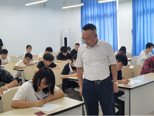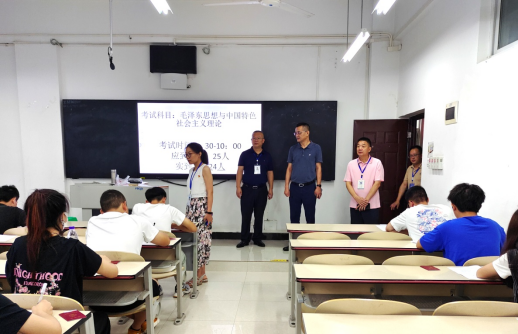 【文/图 教务处】近日,学校党委书记谭勇、副院长贾小波、纪委书记杨守康在教务处、二级学院负责人陪同下,深入考场对期末考试进行巡查,对考场秩序、考试组织、考场设施环境、监考教师履职及学生考纪等情况进行了重点检查。