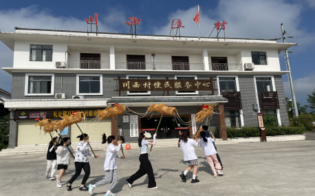在礼让镇川西渔村,师生亲身体验了非物质文化遗产——礼让草把龙,感受其传承千年、悠悠岁月赋予的不朽魅力。在当地负责人带领下,大家一起吼唱梁平抬儿调,沉浸式体验当地人吼出幸福生活的民间音乐。接着,大家手拿不同的癞子锣鼓,齐心协力、共同配合完成了一个完整的锣鼓引子。