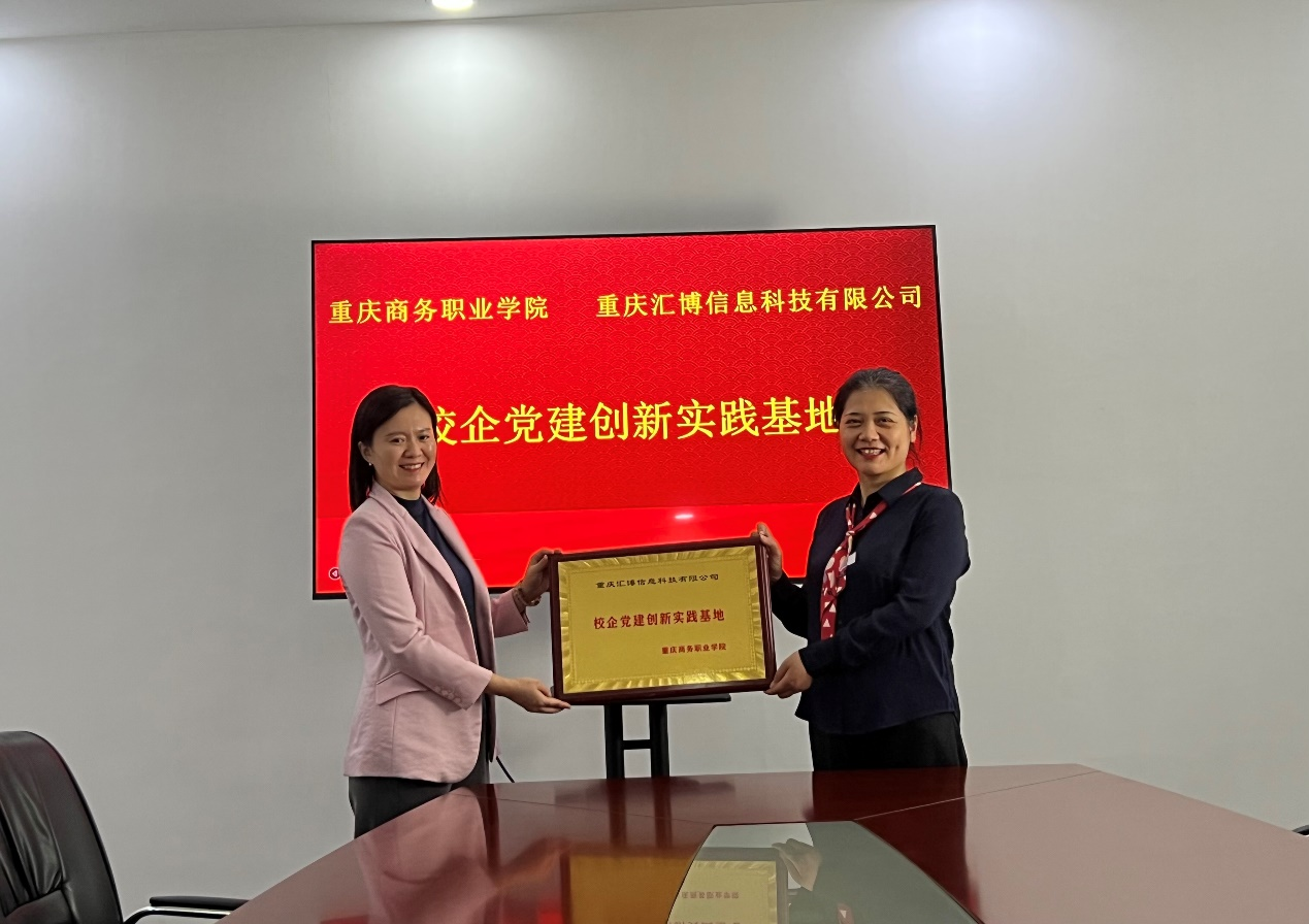 电子商务学院党总支还和重庆汇博科技有限公司党支部共同建设校企党建创新实践基地,双方将在技能认证培训方面展开后续合作,拓宽就业渠道,促进毕业生更加充分更高质量就业。