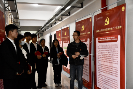 学院党总支充分发挥基层党支部和工会的作用和力量,先后组织教职工开展了多层次、全覆盖的学习宣传活动,如“喜迎二十大健步赏校园”“喜迎二十大竞赛学党史”“喜迎二十大重商拍客行”“喜迎二十大我与党旗留影”“喜迎二十大 大国重器观影”“践行二十大、红岩精神进校园”学生“一站式”社区服务。学院全体36名思政教师深入到200多个教学班级、10000多名学生中开展党的二十大精神学习辅导,构建全员、全过程、全方位思政育人的新格局。