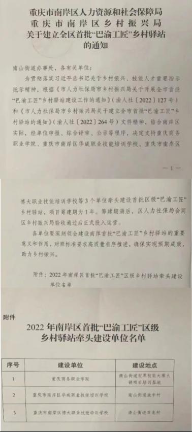 【文/图 继续教育学院】近日,经重庆市南岸区人力资源和社会保障局和重庆市南岸区乡村振兴局审批,学校成功申报南岸区首批“巴渝工匠”乡村驿站。