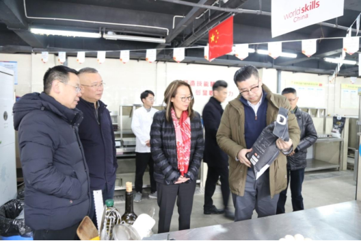 下午3点,麦德龙中国副总裁、人力资源总监张宜业,人力资源总经理车颖,西一区区域总经理余意坚,餐饮及服务部门经理陈海亮,麦德龙餐饮学院培训经理方诗慧,区域商务运营经理戴勇一行人到南岸校区进行参观。学校党委委员、教务处处长、校企合作处处长李焱,烹饪学院党总支书记、院长李伟,烹饪学院副院长陈勇等陪同,参观了烘焙、西餐两个世赛基地的基本情况以及在建的产教融合实训大楼功能布局。