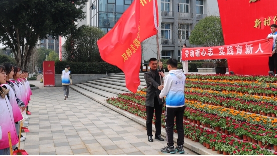 动员讲话后,陈灵凌副书记亲自将会计学院劳动实践先锋队队旗授予学生代表李树林,本学期劳动实践教育正式拉开帷幕。会计学院劳动实践先锋队30余名队员在雷锋精神和“劳动砺心志 实践育新人”队训的感召下,走进学校北山文化公园进行“绿色校园”劳动志愿服务,在莲花池畔、在北山坡道、在树林草丛,时刻穿梭着这群志愿者的身影,他们挥洒下劳动的汗水,守护着北山公园的美丽,并将文明、奋斗和奉献的力量传递到整个校园。