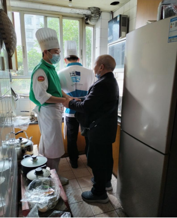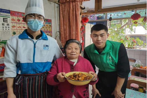 一大早,志愿者们就根据之前掌握的独居老人的饮食偏好到附近菜市场采购食材。通过2个小时的烹饪,志愿者们端上了美味的红烧肉、烧白、手工包饺子……