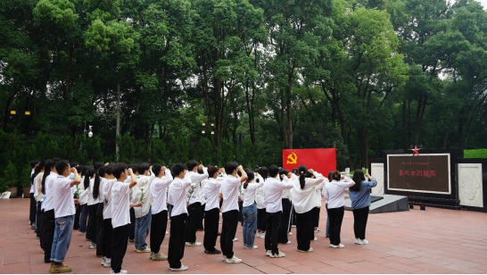 全体师生党员来到歌乐山烈士陵园进行参观学习,全面深入感受红岩先烈们的凛然斗志、英雄气概,深刻地感知“崇高思想境界、坚定理想信念、巨大人格力量、浩然革命正气”的红岩精神的主要内涵。在革命英雄烈士墓前,全体新党员列队整齐、神情凝重、默哀致敬、敬献白花,面向党旗,庄严入党宣誓,以铮铮誓言,表达坚定不移听党话、跟党走,薪火相传、接续奋斗的信念和决心。