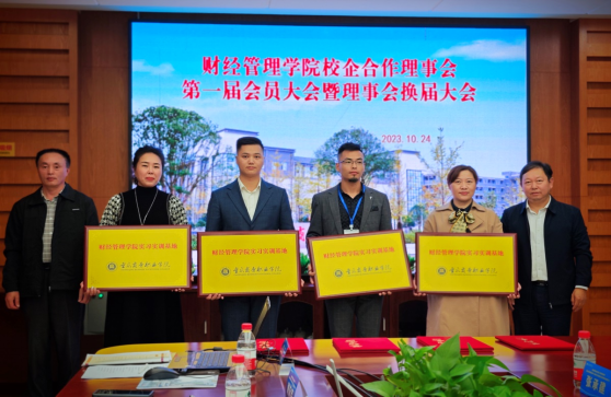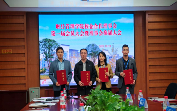 苏启立作了财经管理学院第一届校企合作理事会工作汇报。会议通过了新一届理事长、副理事长、理事成员单位名单和《理事会章程》(修订),推选财经管理学院为理事长单位。舒鸿为副理事长单位、常务理事单位颁发了聘书,新一届理事会副理事长单位新道科技股份有限公司、广联达科技股份有限公司在会议上分别作了发言。