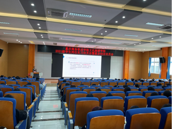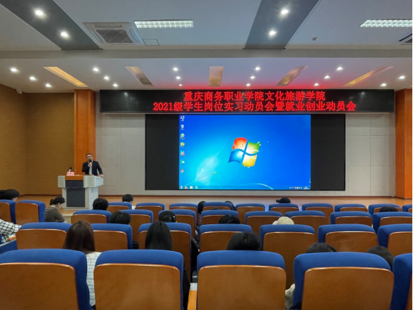 【文/图 文化旅游学院】11月8日,文化旅游学院在学术报告厅举行“2021级学生岗位实习暨就业创业动员会”。学院党总支书记、党总支副书记副院长、招生就业处、教务办、学团办相关及各教研室主任、实习指导教师、毕业班辅导员和2021级全体毕业生参会。