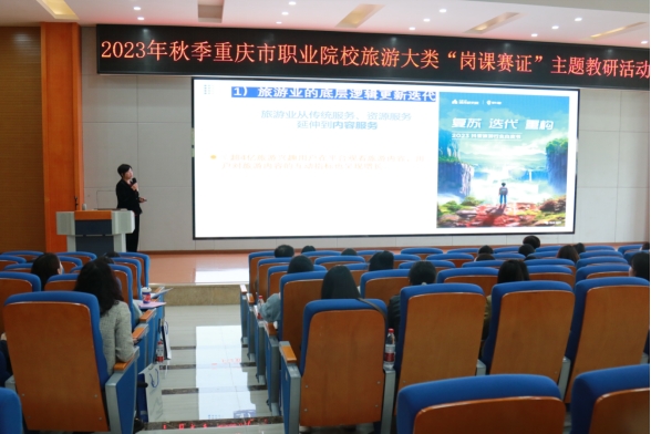 【文/图 文化旅游学院】11月10日,由重庆市教育科学研究院主办、学校承办的2023年秋季重庆市职业院校旅游大类“岗课赛证”主题教研活动在第二学术报告厅顺利召开。来自全市各高等职业院校、中等职业学校的领导和教师共100多人参加此次教研活动。