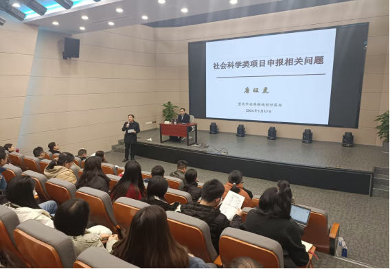 此次培训主要围绕《社会科学类项目申报相关问题》进行。唐旺虎从全国省市规划办主任会议精神、社会基金和规划项目简介、社科项目申报相关问题等六个方面进行指导,并对具体填写申报书的常见问题进行了深入剖析,既有理论深度,又有实践操作路径,对项目申报具有很高的指导意义。最后,唐旺虎针对学校国家社科基金项目的申报进行了总体建议及指导。