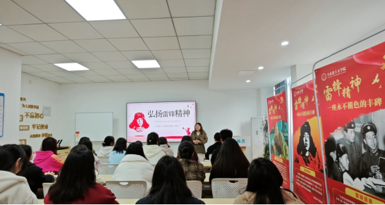 刘一丹老师以“弘扬雷锋精神赓续红色血脉”为主题作宣讲,她从雷锋日记、雷锋语录以及新时代如何传承弘扬雷锋精神三个部分展开。雷锋日记中展现了雷锋同志的坚定信仰、无私奉献、爱岗敬业和对党的深厚感情等精神品质。新时代大学生弘扬雷锋精神,应自觉树立正确的价值观,践行爱国主义精神,关心集体、乐于奉献、勤奋学习、艰苦奋斗,让青春在祖国需要的地方绽放绚丽之花。