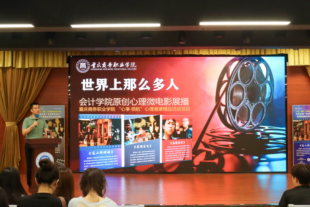 【文/图会计学院】5月28日,会计学院在学生活动中心组织计忆青春——“这世界那么多人”心理微电影创作及展播活动,观看会计学院自主创作的《温暖短信》《展翅高飞》《远山的呼唤》三部微电影,学院党总支、学团办相关人员及100余名学生参与活动。