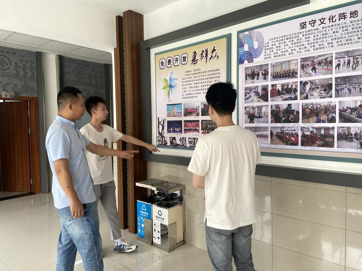 丰都县文化馆副馆长徐粒丹,丰都县文化和旅游发展委员会党组成员、县非物质文化遗产保护中心主任何廷鹰对出版传媒学院一行表示欢迎。何廷鹰详细介绍了文化馆的发展历程,热情展示了文化墙等特色项目。