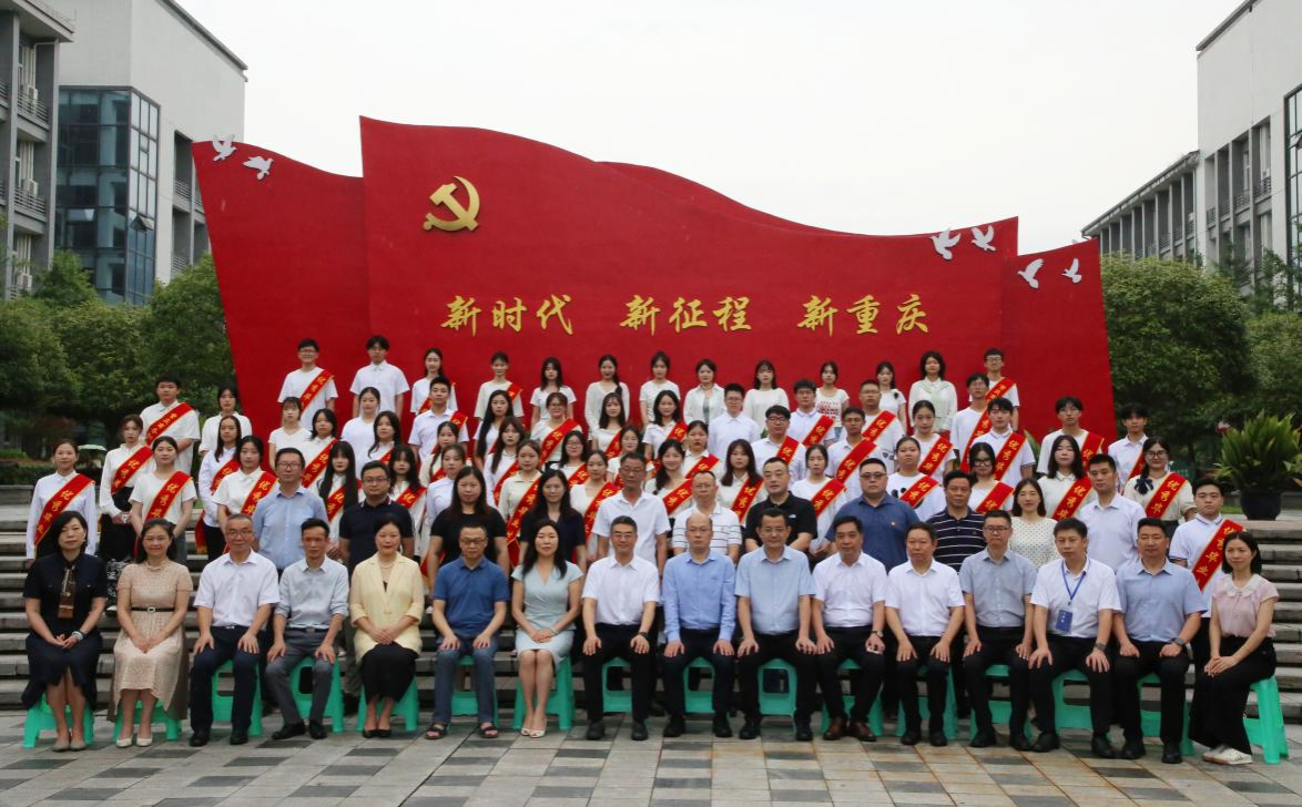 典礼结束后,全体校领导在党旗墙前与毕业生合影留念。