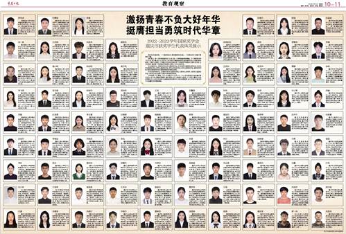 青年兴则国家兴,青年强则国家强。为激励大学生勤奋学习、努力进取,成为德智体美劳全面发展等社会主义建设者和接班人,中央财政出资设立国家奖学金,用于奖励高校全日制学生中特别优秀的学生,每年奖励5万人,每人奖励8000元。此次《重庆日报》刊登国家奖学金获奖学生代表名录,展示优秀典型代表风采,他们厚植家国情怀,胸怀强国之志,让青春在为祖国、为人民的不懈奋斗中绽放绚丽之花,以自己的实际行动激励着更多青年学子树立报国理想,奋力书写为中国式现代化挺膺担当的青春篇章。