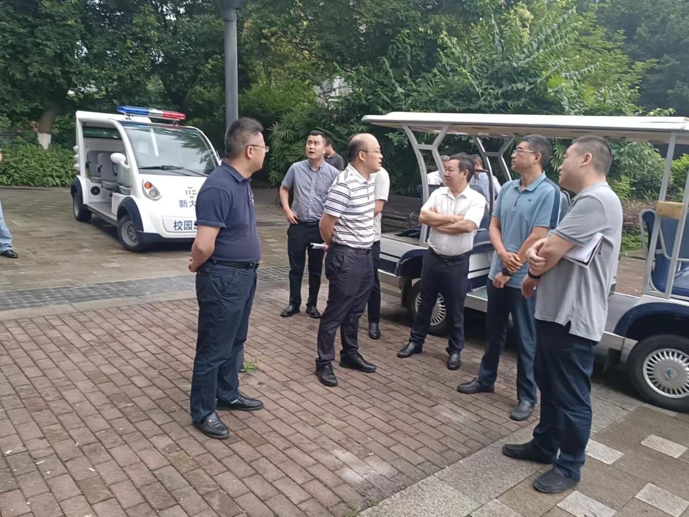 【文/图 党委保卫部】为保障校园交通安全,破解学校人车分流通行难题,7月1日上午,党委书记江涛,党委副书记、院长陈忠飞,副院长舒鸿带队,现场研讨学校人车分流交通改造工作。党委保卫部、党委学生工作部、后勤处等部门负责人和相关工作人员参加。