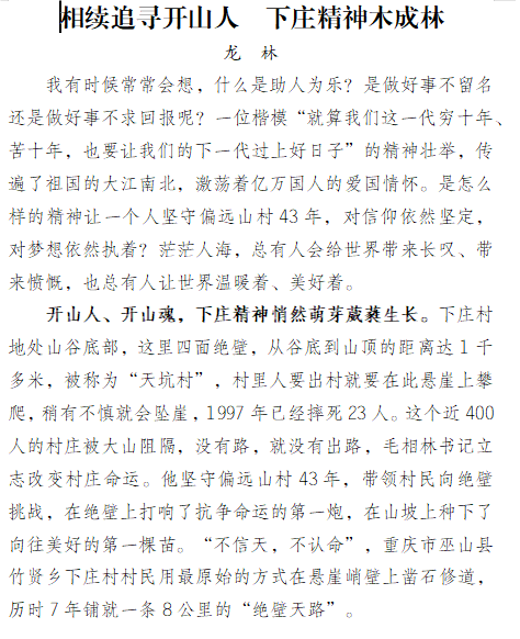 网文入围作品《相续追寻开山人下庄精神木成林》节选