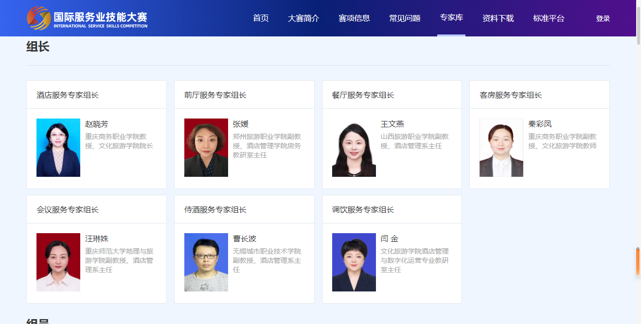 【文/图 文化旅游学院】中国服务(数字文旅)产教融合共同体(以下简称共同体)自成立以来,致力于提升院校培养行业人才的关键能力,受中国商业联合会信任,由中国商业联合会主办的2024年国际服务业技能大赛酒店服务赛项编制工作委托共同体牵头完成。该项工作于2024年3月正式开启,经前期自愿报名与推荐,共同体秘书处组建2024年国际服务业技能大赛酒店服务赛项编制组专家库,由25家单位45位政行企校专家共同编制赛制标准,于6月正式完成赛制编制工作,并得到中国商业联合会高度认可,授予45位同志为2024年国际服务业技能大赛酒店服务赛项标准编制专家(组长),正式发放专家(组长)聘书并在中国商业联合会官网进行公布。专家库成员来自全国各地酒店企业中层管理者、高校教师、行业协会专家,涉及酒店服务、前厅服务、餐厅服务、客房服务、会议服务、侍酒服务、调饮服务等方向。