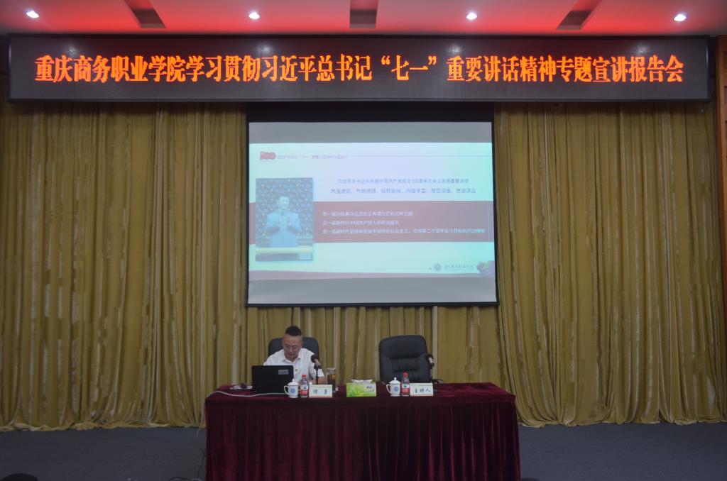 【文/图 党委宣传部】10月11日下午,市委教育工委和市商务委宣讲团成员、学校党委书记谭勇在第一会议室就学习贯彻习近平总书记“七一”重要讲话精神作专题宣讲报告,学校在家领导、机关行政人员、党员师生代表等200多人参加宣讲报告会。学校纪委书记杨守康主持宣讲报告会。