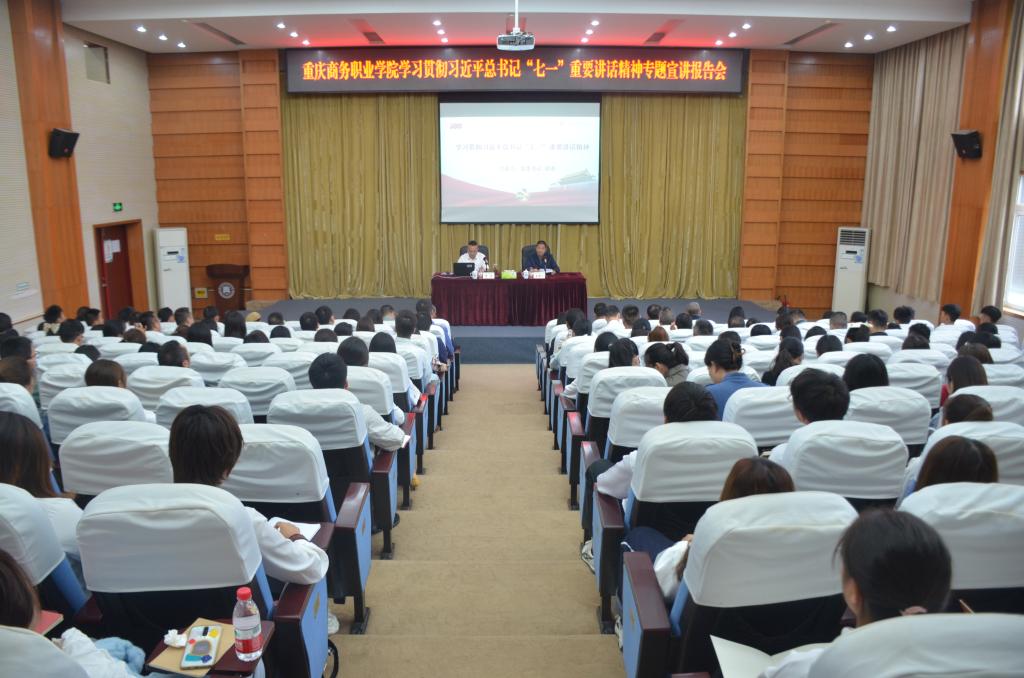 谭勇在报告中紧紧围绕“深刻认识、准确把握习近平总书记“七一”重要讲话的重大意义”“深入学习领会习近平总书记“七一”重要讲话提出的一系列新思想、新观点、新要求”“深学笃用习近平总书记“七一”重要讲话精神,在新的征程上奋力开创更加美好的未来”等三方面内容,深刻阐释了习近平总书记“七一”重要讲话精神的重大意义和精神实质,全面准确学习把握习近平新时代中国特色社会主义思想。谭勇指出,要知行合一学用结合,加快推进学校高质量发展。全校上下要以习近平总书记“七一”重要讲话精神为指引,切实立足新发展阶段、贯彻新发展理念、构建新发展格局,按照“把牢定盘星,稳住基本面;服务新格局,解决烦心事;突破卡脖子,抢占制高点;激发新动能、汇聚大合力”总体思路,加快推进学校高质量发展,为第二个百年开好局起好步、为实现中华民族伟大复兴贡献教育力量。
