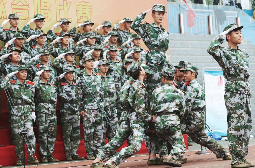 【文/陈小容、徐艳霞    图/团委新媒体中心】9月18日,学校在运动场举行纪念“九一八”主题教育活动暨新生军歌合唱比赛。军训团参谋长杨涛少校,党委宣传部、学工部、团委负责人,各院系党总支负责人以及各连连长、指导员观看比赛。