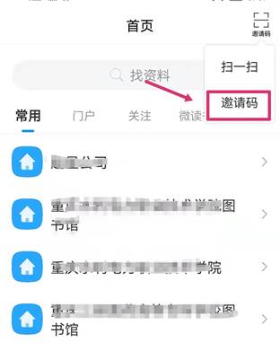 5、邀请码及扫一扫:邀请码及扫一扫功能在首页右上方,单位、课程、小组、直播等均可由创建者提供邀请码或二维码,参与者通过邀请码或二维码方式直接进入。