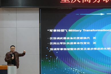 庞教员详细分析了美军新一轮军事革命产生的背景和原因,用实例帮助学生更好地理解美军在新一轮军事转型中的思路与举措,重点讲解了面对美军的军事革命,我国该如何应对及当代大学生的使命和责任。