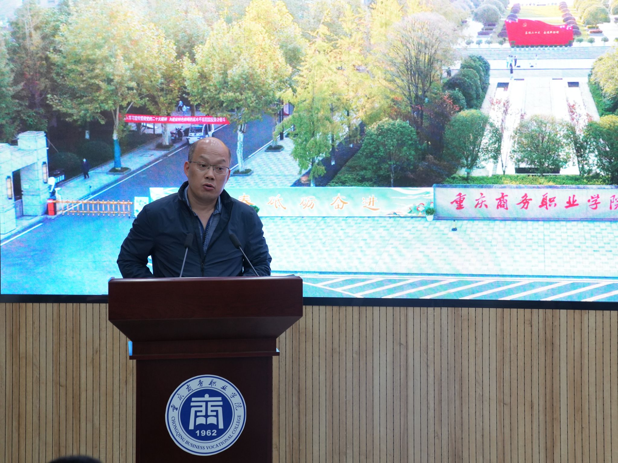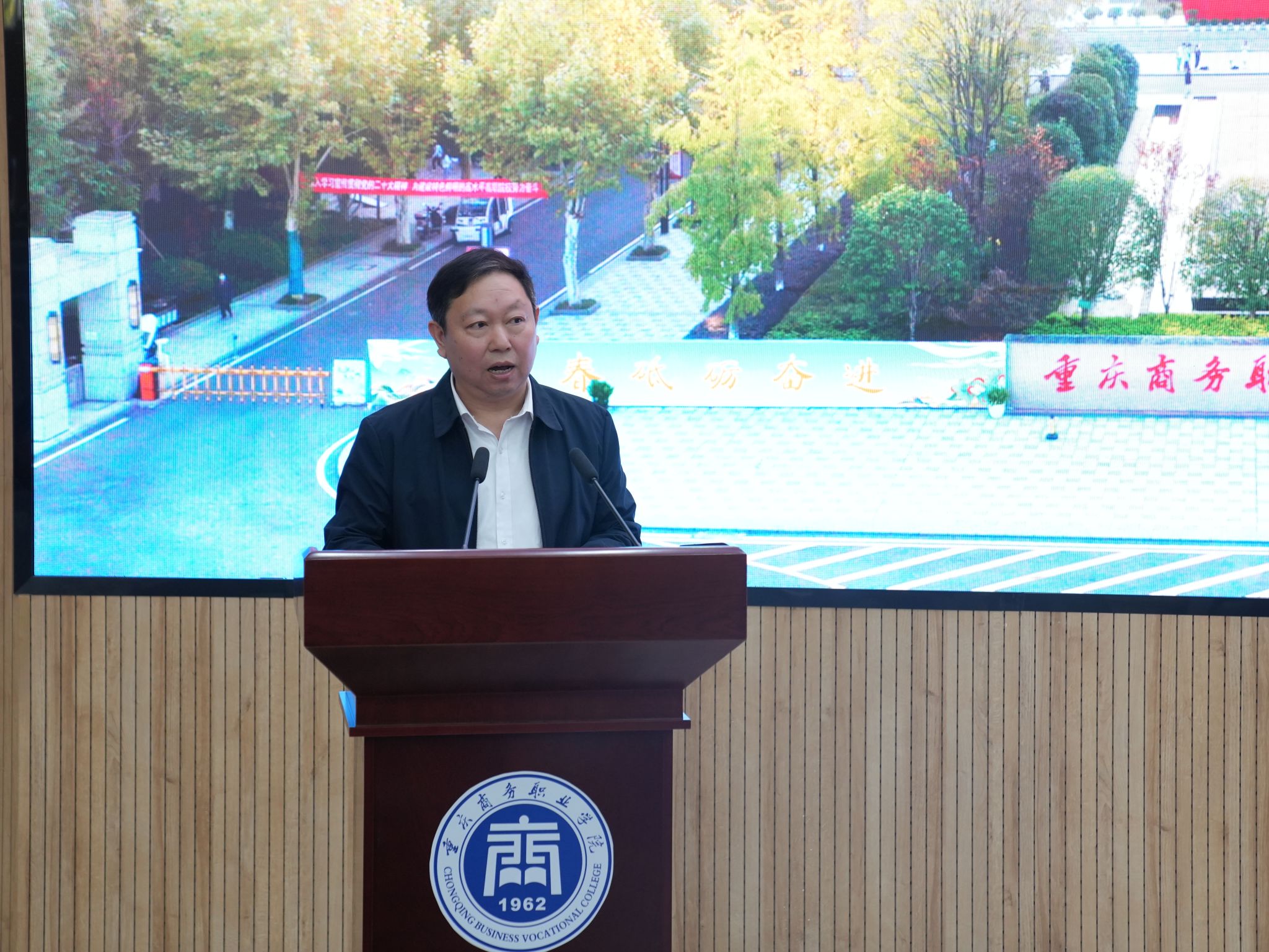 【文/图 党委保卫部】4月15日,学校安全稳定工作会议在南岸校区召开,党委书记江涛,党委副书记、校长陈忠飞,党委副书记余晓玲以及其他校领导,各部门、二级学院党政负责人和副科级以上干部等代表出席会议。会议由副校长舒鸿主持,大学城校区设立分会场以视频方式同步召开。